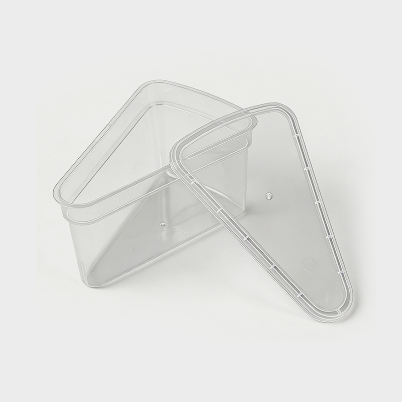 Diseño triangular: diseñado específicamente para alimentos cortados en forma triangular, se adapta con precisión a rebanadas individuales de pastel o tarta, satisfaciendo las necesidades de empaquetado en porciones para panaderías. También puede contener sándwiches y cubos de queso triangulares.